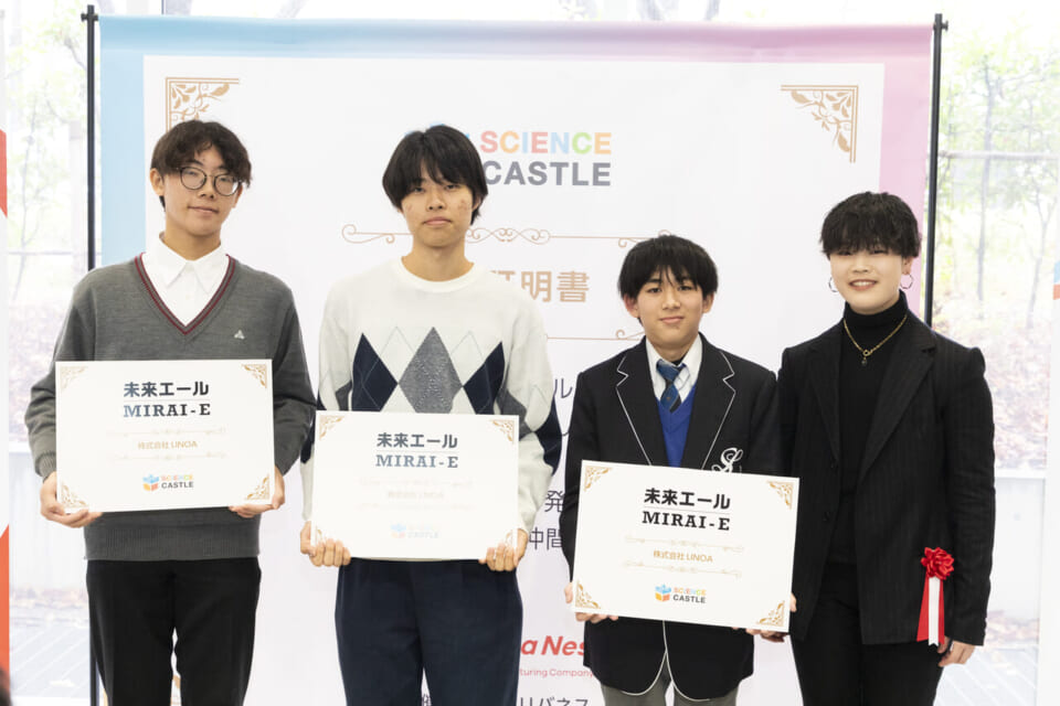 左から、伊藤園賞(後日授与)、東武不動産賞、マイポックス賞