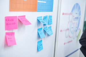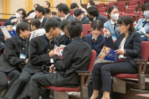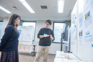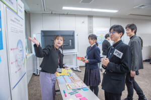 本ワークショップでは、ブース交流を通じて、中高生が企業の掲げるテーマに対し、「一緒に作りたい未来」や自身の研究と掛け合わせた新たな可能性についてアイディアを提案しました。これらのアイディアについて、最前線で研究や事業に取り組む企業の社員や研究員とともに、研究への発展性や実現に向けた課題について議論を行いました。
