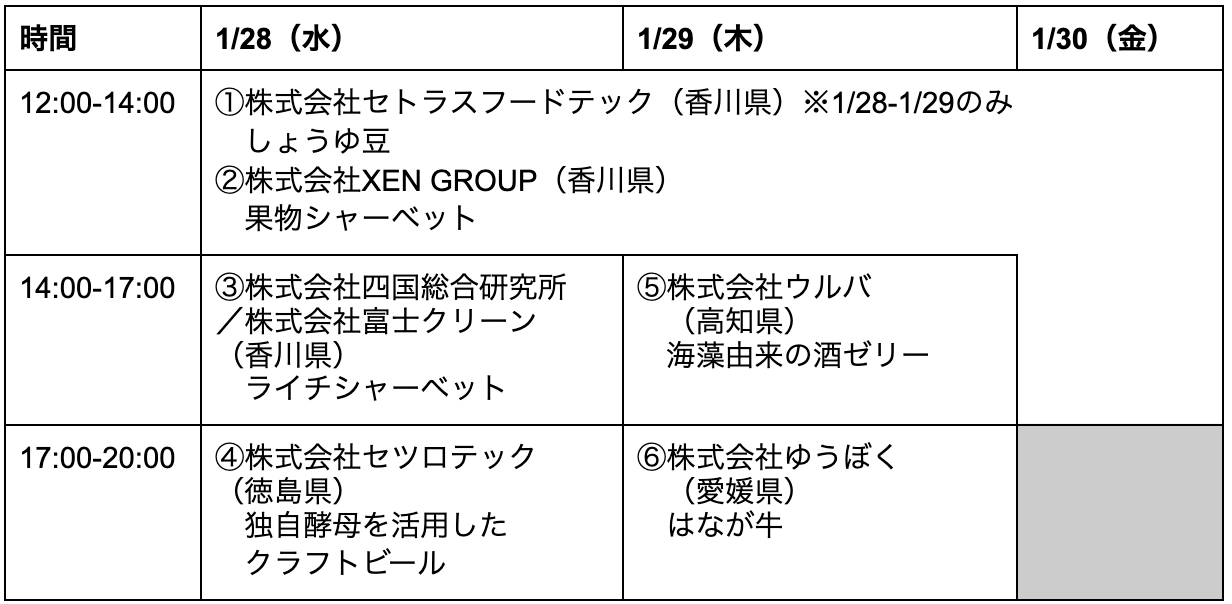 このたび、参加企業が立案したコンセプトの仮説を首都圏市場で検証するポップアップイベント「四国発・フードテック試食ラボ」を、2026年1月28日(水)から30日(金)にかけて東京都内で、6社にて実施いたします。