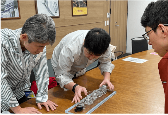 これまでに両社では、小学校5,6年生を対象とした「セイコーわくわく時計教室」のプログラムを開発したほか、経済産業省「未来の教室」STEAMライブラリー事業に参画し、中高生向けの探求プログラムの開発。さらには、コロナ下に合わせたオンライン・対面双方での実施を可能としたハイブリッド型のプログラム開発を推進し、のべ2,000名を超える子どもたちに、世界の人と社会をつなぐ、見えない共通言語「時」について伝えてきました。また、時計職人の技術力が体験できる「時計職人体験キット」や、ふり子式時計の特徴や動きが分かりやすく学べる「ふり子式時計の模型」、歯車模型(機械式時計の中身を分かりやすく再現した模型)の開発を進め、活用することで、どの世代にも分かりやすく伝える工夫を心がけてきました。