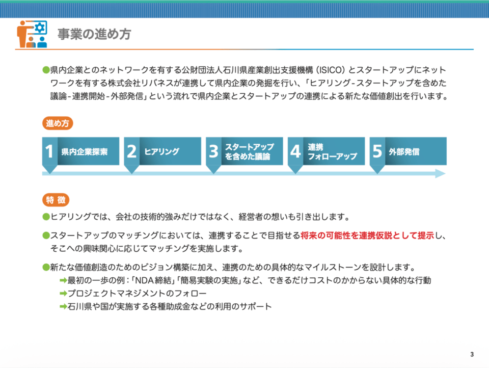 株式会社リバネス(本社:東京都新宿区、代表取締役社長COO:髙橋修一郎、以下「リバネス」)は、石川県より公募のあった「令和7年度オープンイノベーション 新事業創出支援事業」の採択を受け、県内企業とスタートアップの連携を促進してきました。この度、2025年度の活動ならびに成果をまとめたPDFマガジンが、公益財団法人 石川県産業創出支援機構(以下 ISICO)のウェブサイトにて公開されました。