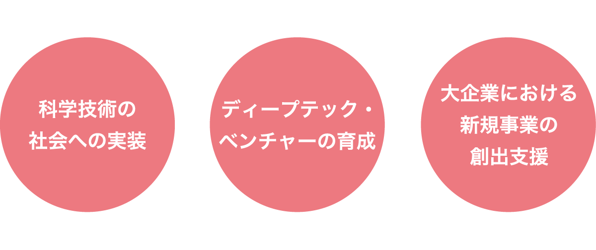 ベンチャー、研究機関、大企業をつなぎ、新規事業を創出します。